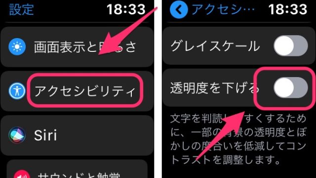 Apple Watchのディスプレイを「モノクロ表示」に変更し、バッテリー持ちの向上を狙います。